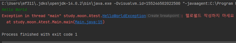 throw new HelloWorldException("헬로월드 작성하지 마세요");
