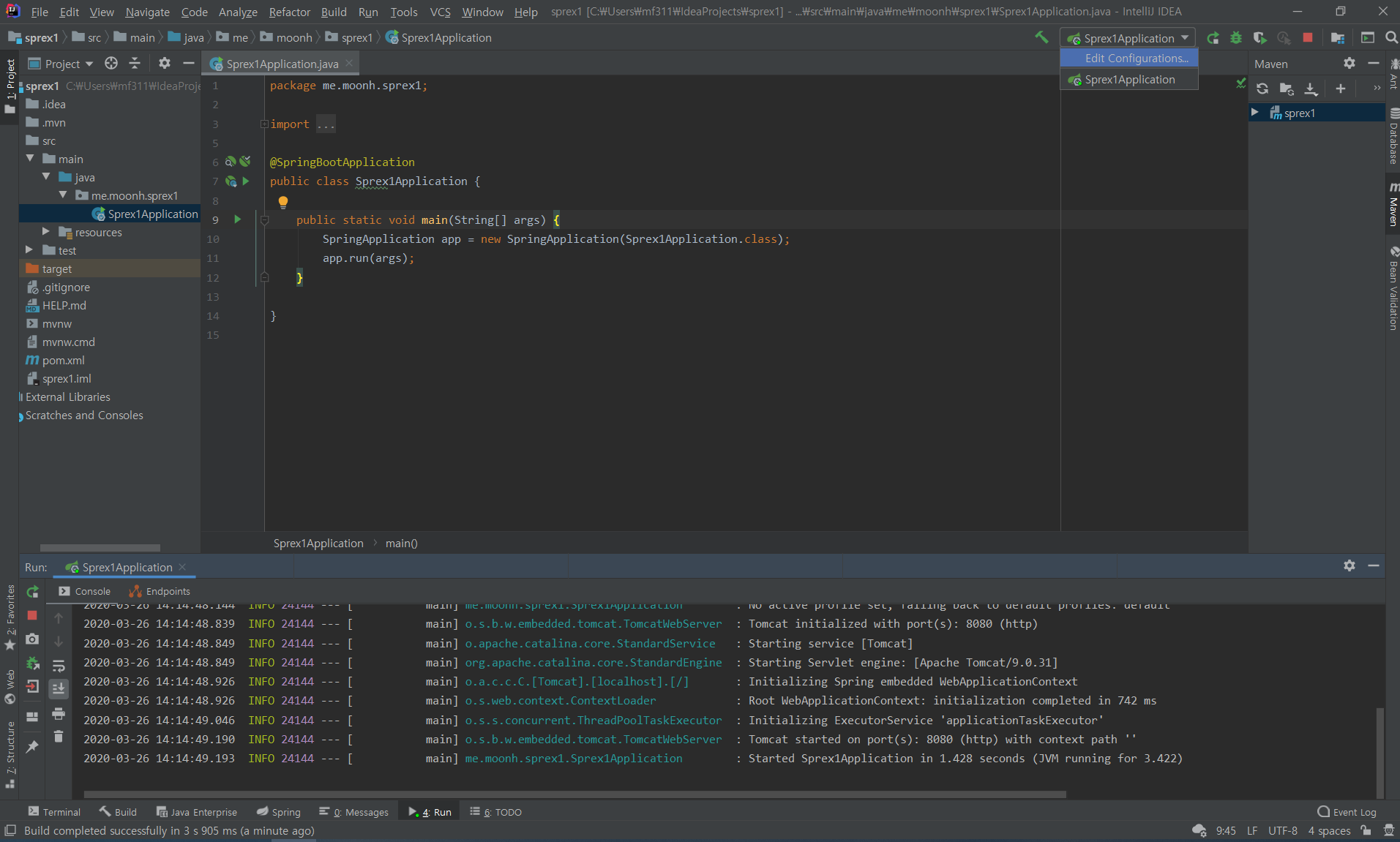 | [Spring]Spring Application 을 실행하는 2가지 방법 (0) | 2020.03.26 |