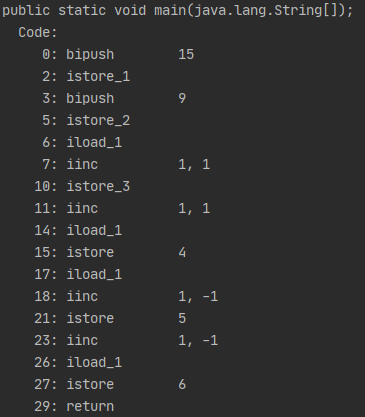 ** ++와 --가 산술연산자에 포함되는지 모르겠다. 일단 이곳에 분류하자면 ++과 --가 전위 연산일 때는 그 어떤 연산보다 먼저 이루어진다. 바이트코드를 확인해보면 다음과 같다.